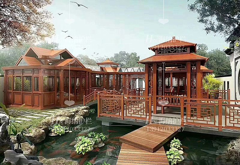 仿古木紋涼亭廊架